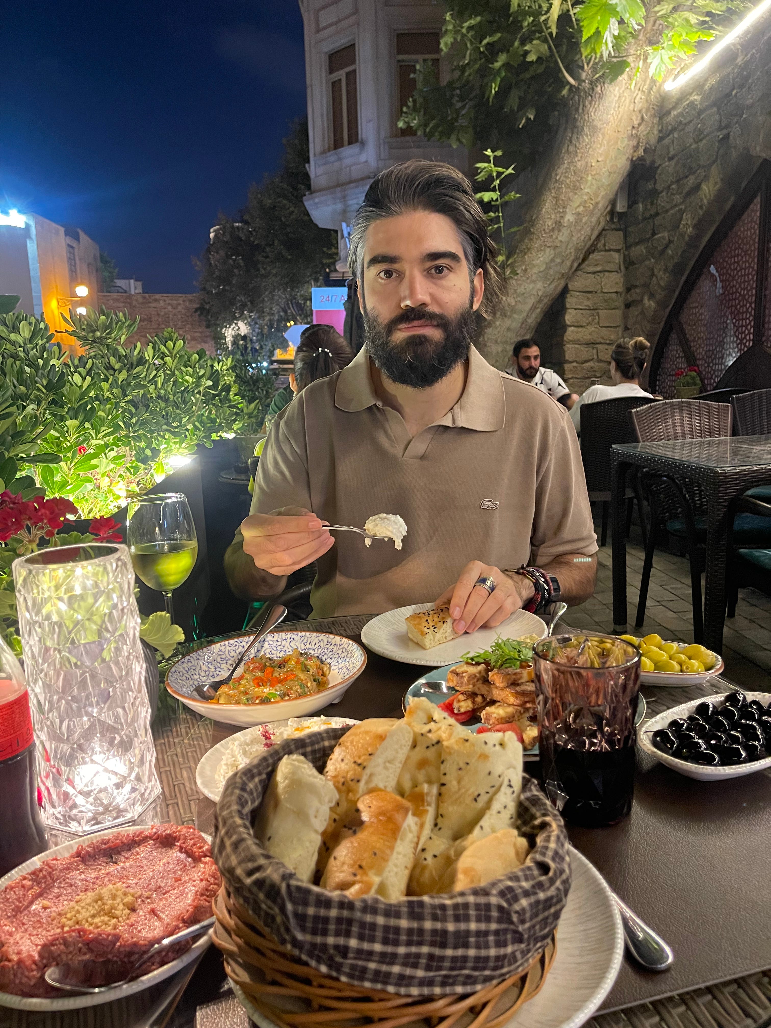 Il cibo: Baku scoppia di ristoranti belli e a buon mercato, di caffè sul corso, di chioschi di kebab, c’è di tutto e, soprattutto, a qualsiasi ora del giorno e della notte. Un paio di posti fanno addirittura orario continuato da mezzanotte a mezzanotte, mentre in generale gli altri chiudono la cucina non prima delle undici di sera, quando non dopo la mezzanotte. Insomma, mangiare non è mai un problema, nemmeno economico: nei ristoranti più eleganti è difficile spendere più di cinquanta euro a testa, la media si attesta sui 20-30 per ristoranti di buon livello, a seconda di cosa mangiate. Già, cosa mangiate? La cucina tradizionale è soprattutto di matrice iraniana e levantina, quindi aspettatevi un tripudio di carne alla griglia, ma anche stufati, piatti di riso con frutta secca, antipasti a base di peperoni e melanzane, formaggi molto salati, storione alla brace e un vero e proprio culto per gli spiedini. Senza carne né pesce, il tutto può diventare molto monotono dopo un paio di giorni, ma ci sono alternative di vario genere. Ecco una piccola lista di ottimi ristoranti che abbiamo provato: